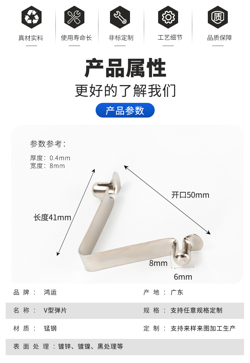 商品名称:厂家直销V型弹片冲压弹簧片弹扣管内定位U型弹片卡扣空心双珠弹片