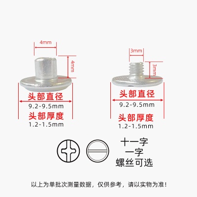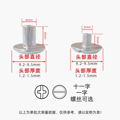 账本钉金色子母铆钉菜谱样册子母螺丝十一字对锁螺丝 M4直径5